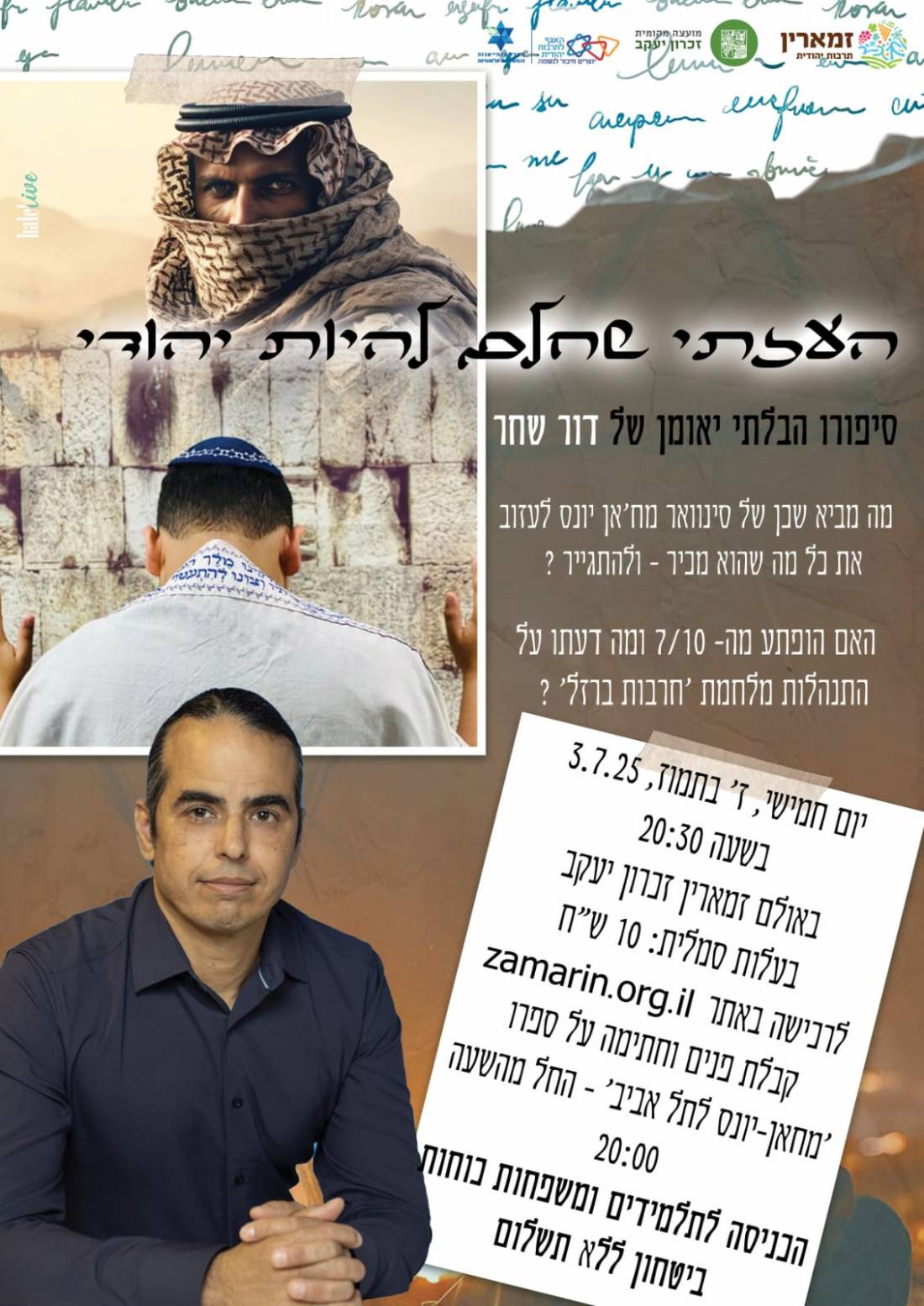 העזתי שחלם להיות יהודי סיפורו הבלתי יאומן של דור שחרמה מביא שכן של סינוואר מח׳אן יונס לעזוב את כל מה שהוא מכיר - ולהתגייר?האם הופתע מה-7/10 ומה דעתו על התנהלות מלחמת ׳חרבות ברזל׳?יום חמישי, ז׳ בתמוז, 3.7.25בשעה 20:30 באולם זמארין זכרון יעקבבעלות סמלית: 10 ש״ח לינק לרכישה https://www.zamarin.org.il/page.php?type=events&day=2025-07-03קבלת פנים וחתימה על ספרו ׳מחאן-יונס לתל אביב׳ - החל מהשעה … המשך קריאת הפוסט העזתי שחלם להיות יהודי