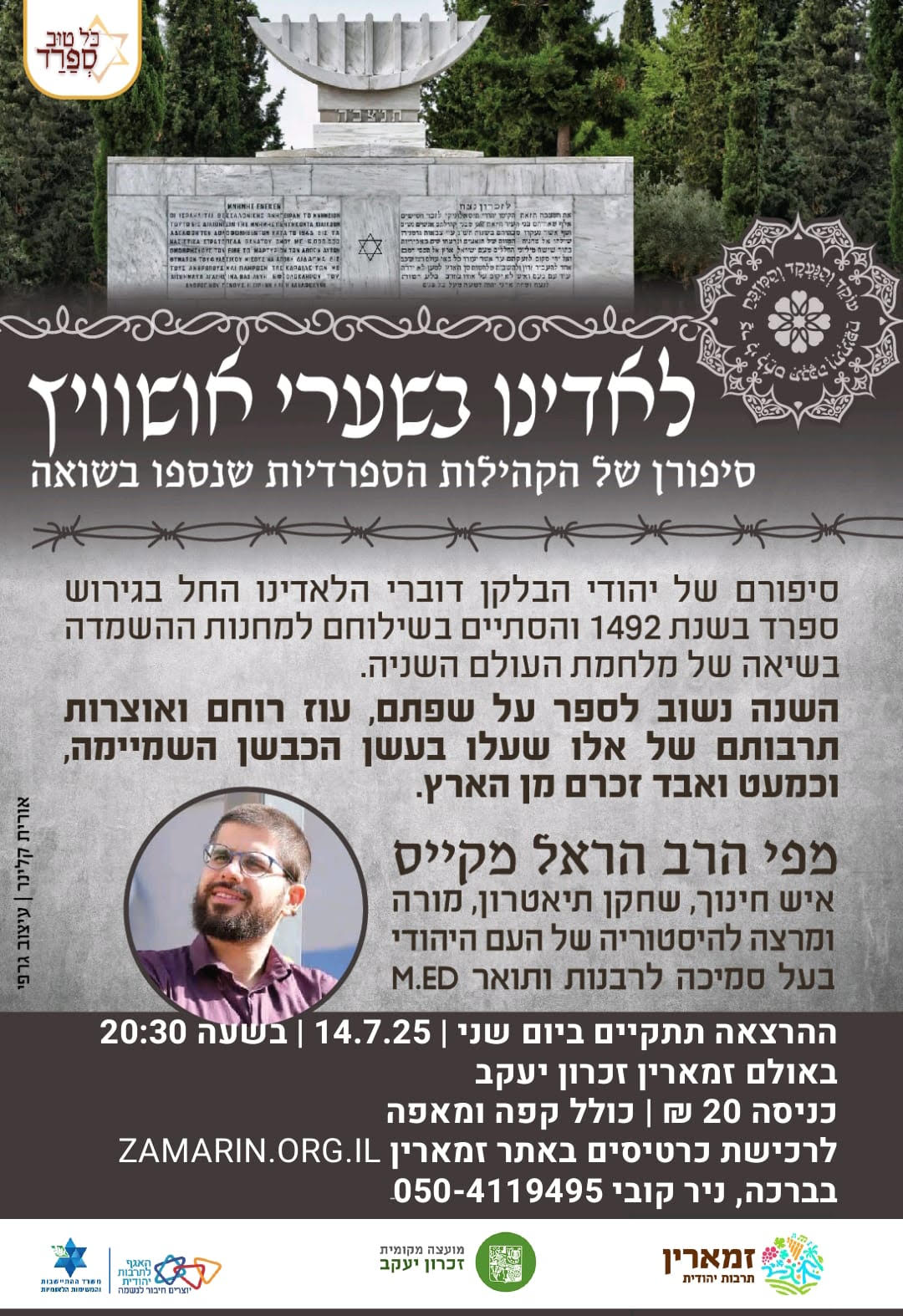 לאדינו בשערי אושוויץסיפורם של יהודי הבלקן דוברי הלאדינו החל בגירוש ספרד בשנת 1492והסתיים בשילוחם למחנות ההשמדה בשיאה של מלחמת העולם השנייה.השנה נשוב לספר על שפתם, עוז רוחם, ואוצרות תרבותם של אלו שעלו בעשן הכבשןהשמיימה וכמעט אבד זכרם מן הארץ.עם הראל מקייס איש חינוך שחקן תיאטרון ומרצה להיסטוריה של העם היהודי בעל סמכהלרבנות ותואר ME.Dיום שני … המשך קריאת הפוסט לאדינו בשערי אושוויץ