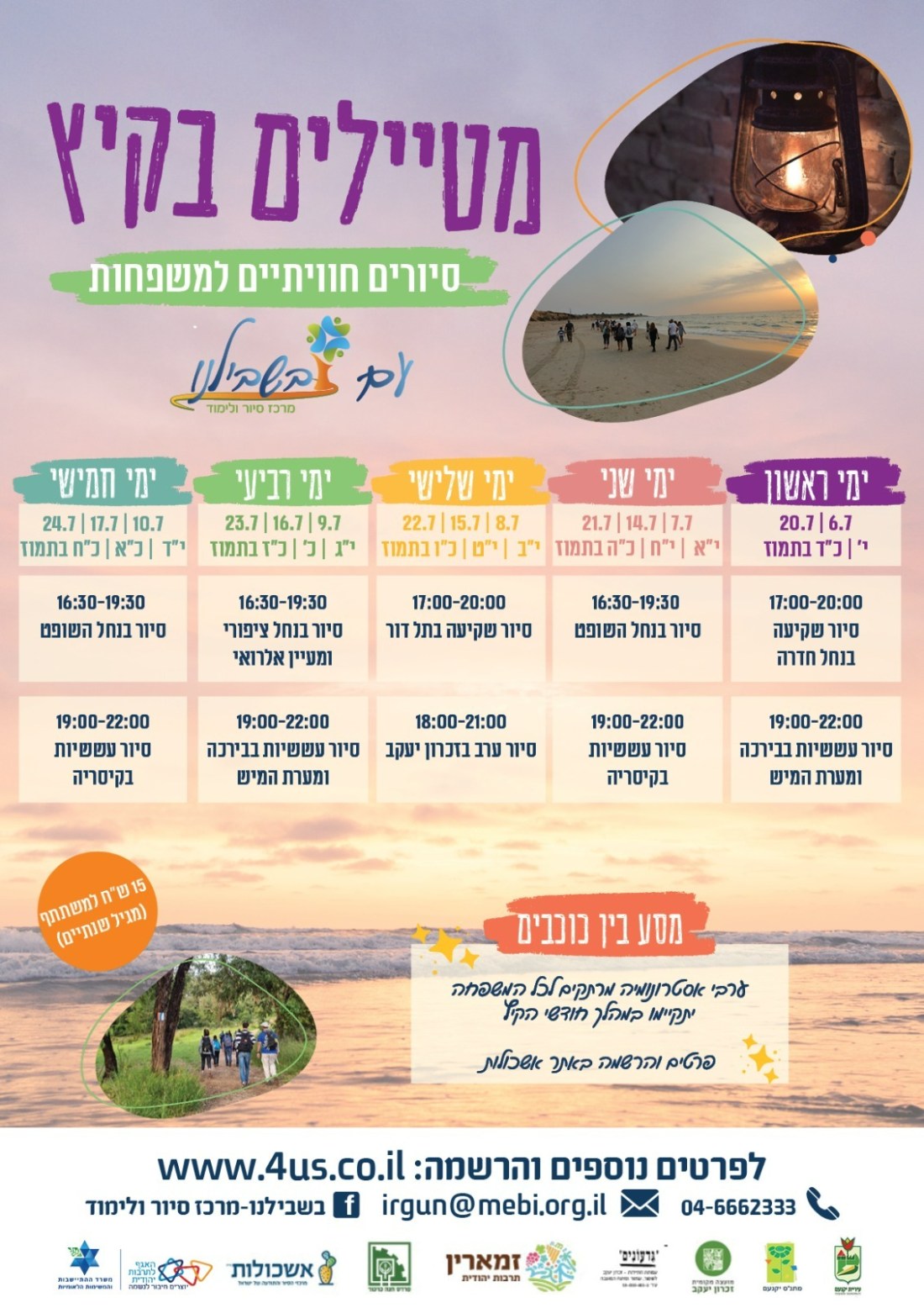 גם הקיץ מטיילים עם בשבילנו כמדי שנה, גם הקיץ ויותר מתמיד אנו מציעים שלל סיורי טבע קסומים! הסיורים יתקיימו במהלך חודש יולי:סיורי אחר הצהריים סיורי שקיעה סיורי עששיות.הסיורים בשיתוף מחלקות תרבות יהודית זכרון יעקב, פרדס חנה ויקנעםלפרטים והרשמה:https://4us.co.il/events-cat/summer/כדאי לשריין מקומות בהקדם, מספר המקומות מוגבל!כמו כן נקיים מוקד סיורי אסטרונומיה בשיתוף אשכולות וקק"ל ביער חוף הכרמל - הרשמה ופרטים באתר אשכולותהסיורים מועברים … המשך קריאת הפוסט גם הקיץ מטיילים עם בשבילנו