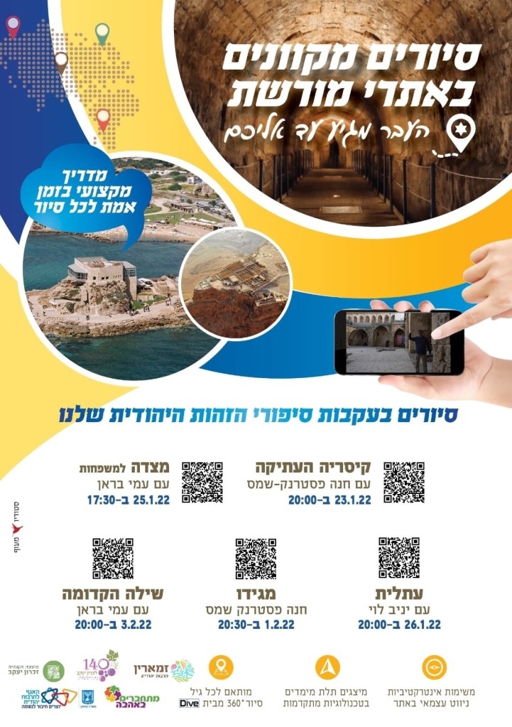 המחלקה לתרבות יהודית זמאריןמזמינה אתכם תושבי זכרון יעקבלסיורים בעקבות הזהות היהודית שלנומוזמנים להשתתף בסיורים מקוונים המועברים בטכנולוגיה מדהימהעם מדריכים בזמן אמת.סיור ראשון בסדרהיתקיים הערב 23.1.22שעה 20:00בקיסריה העתיקההמדריכה שלכם להערבחנה פסטרנק- שמסלהרשמה לקבלת קישור לסיור https://katzr.net/91a006סרטון להתרשמותhttps://youtu.be/Y4YkmH43RwEבברכהניר קובי