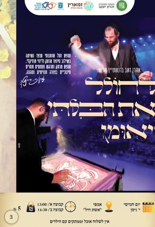 jewish culture zichron yaakov תרבות יהודית זכרון יעקב כללי 17 אפר 20247 נוב 2024 דקה אחת שתף לחיצה לשיתוף ב-X (נפתח בחלון חדש) X לחיצה לשיתוף בפייסבוק (נפתח בחלון חדש) פייסבוק אהבתי טוען... קשור פורסם 17 אפר 20247 נוב 2024
