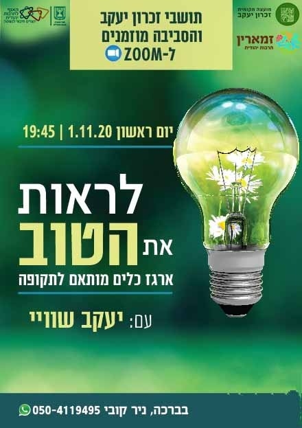 ארגז כלים פרקטי מותאם לתקופה לראות את הטוב ארגז כלים פרקטי מותאם לתקופה עם יעקב שוויי יום ראשון 1.11.20שעה 20:30 בהרצאת זום +ובפייסבוק תרבות יהודית זכרון יעקבhttps://us02web.zoom.us/j/81043555952... ובמקביל *בשידור חי בעמוד הפייסבוק תרבות יהודית*https://goo.gl/Hv7KSZ אז בואו יחד