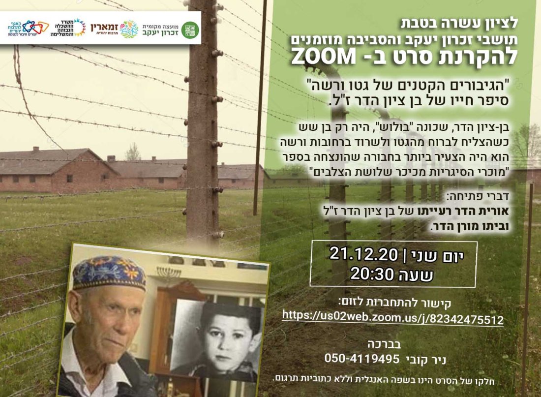 To mark the tenth of Tevet Residents of Zichron Yaacov and the surrounding area are invited to a film screening at ZOOM "The Little Heroes of the Warsaw Ghetto" ** told the life of the late Ben Zion Hadar. Ben-Zion Hadar, nicknamed "Bulush", was only six years old when he managed to escape from the … המשך קריאת הפוסט "The Little Heroes of the Warsaw Ghetto" ** told the life of the late Ben Zion Hadar.
