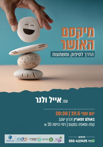 מקור האושר והחיבור לנצח עם יעקב אליצור יום שני 25.12.23 שעה 20:30 האירוע יתקיים באולם זמארין (פרקט) זכרון יעקב כניסה 20 ₪ קפה ומאפה במקום ניר קובי 050-4119495 ** קיים מרחב מוגן במקום