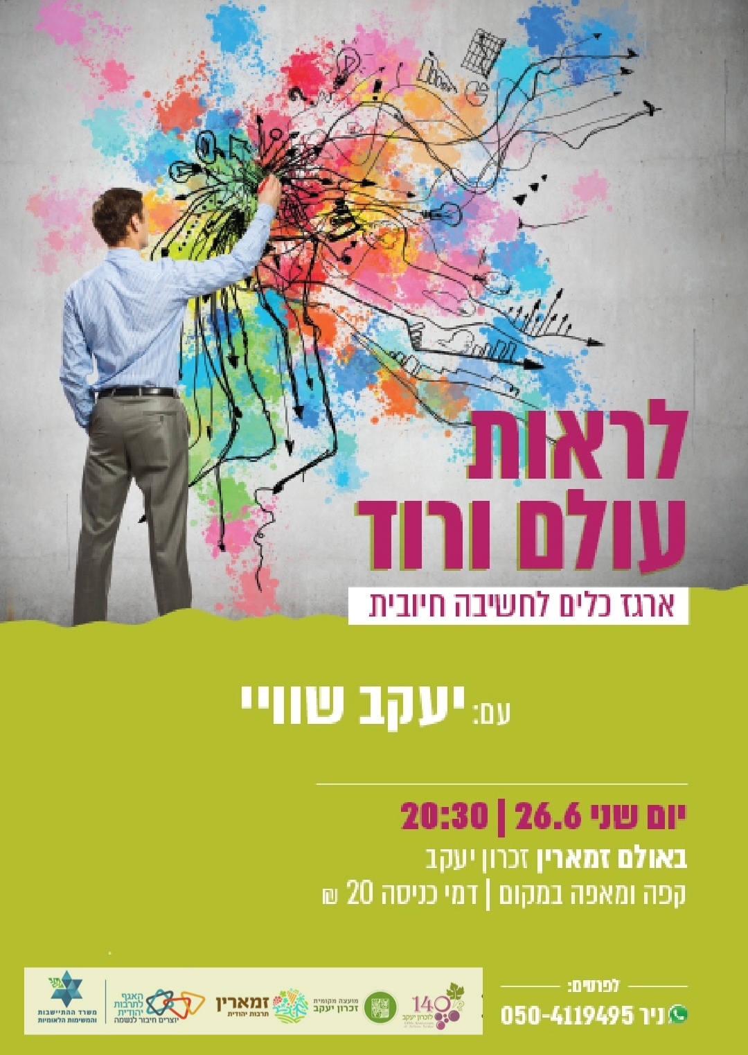 לראות עולם ורוד, ארגז כלים לחשיבה חיובית עם יעקב שווי יום שני 26.6.23 שעה 20:30 האירוע יתקיים באולם זמארין זכרון יעקב ניר קובי 050-4119495